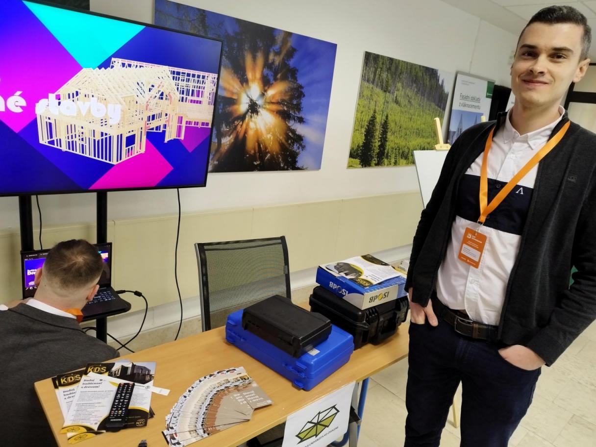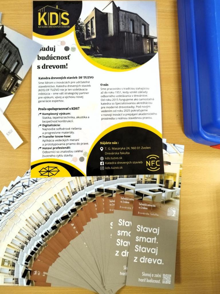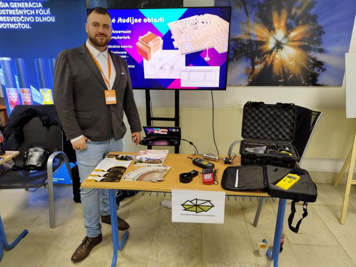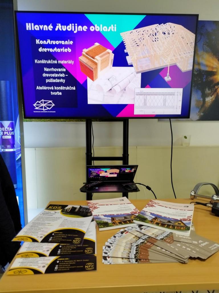 Katedra drevených stavieb zároveň predstavila svoju študijnú a vedecko-odbornú činnosť v samostatnom prezentačnom stánku, ktorý prilákal viacero záujemcov o štúdium aj spoluprácu.