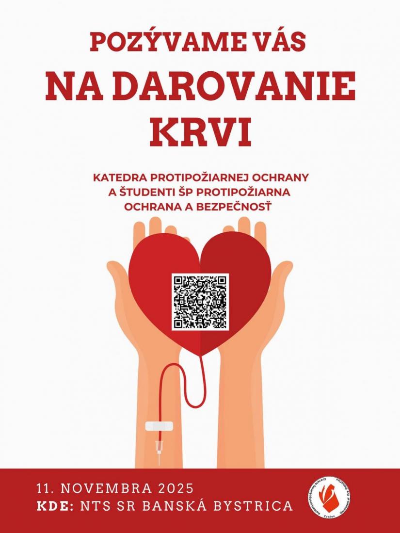 Katedra protipožiarnej ochrany na Drevárskej fakulte TUZVO pozýva všetkých, ktorí chcú pomôcť dobre veci, na darovanie tej najvzácnejšej tekutiny - krvi.