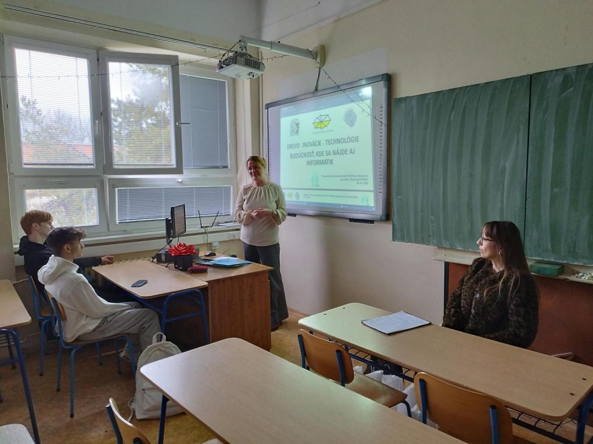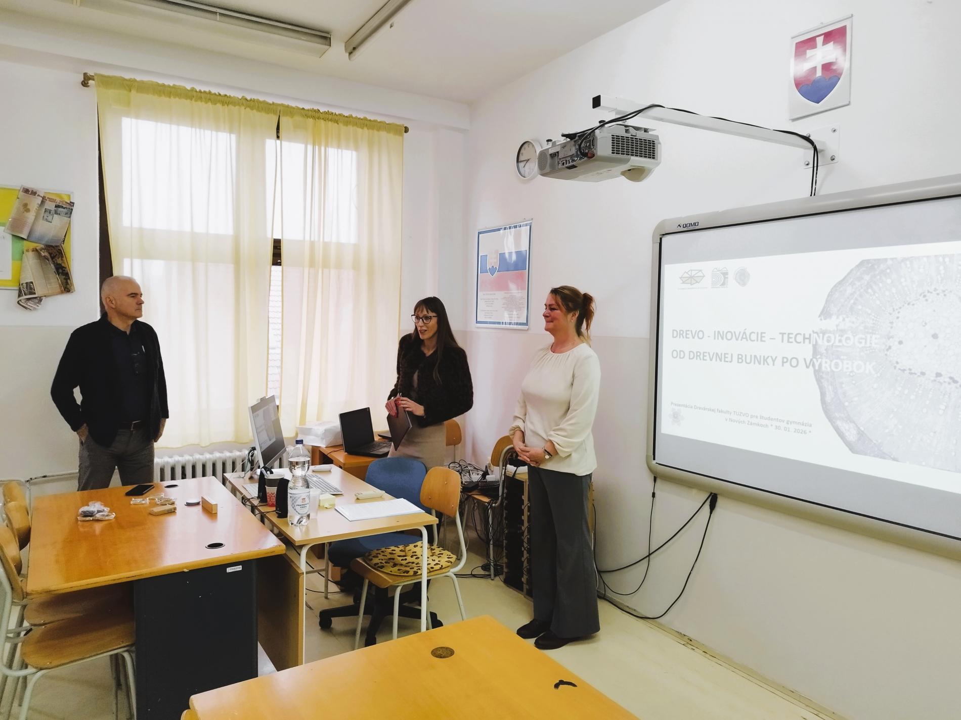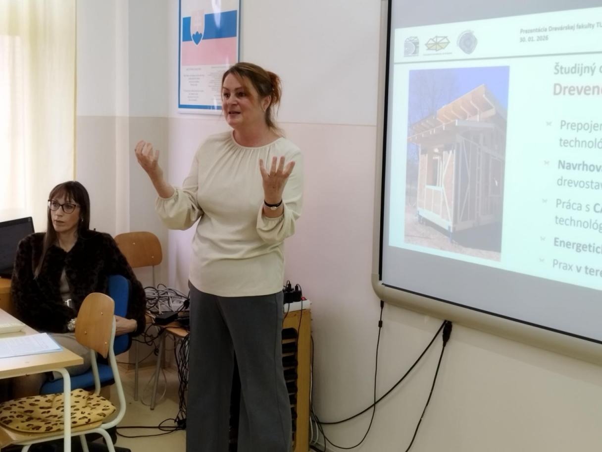 Na školách sa do prezentácie zapojila aj dekanka fakulty prof. Ing. Mariana Sedliačiková, PhD. spolu s doc. Ing. Nadeždou Langovou, PhD. a doc. Ing. Martinom Čulíkom, PhD. ako zástupcovia študijných programov. Návšteva bola súčasťou širších aktivít fakulty, do ktorých sa dlhodobo zapájajú viacerí kolegovia pri prezentovaní štúdia na stredných školách. Nešlo pritom len o predstavenie jednotlivých odborov (drevárstvo, bezpečnostné vedy, ekonómia a manažment, umenie), ale najmä o priblíženie štúdia ako celku, aby stredoškoláci získali jasnejší obraz o tom, čo všetko drevárstvo dnes zahŕňa, aké smerovanie ponúka a kde všade sa dá po škole uplatniť.