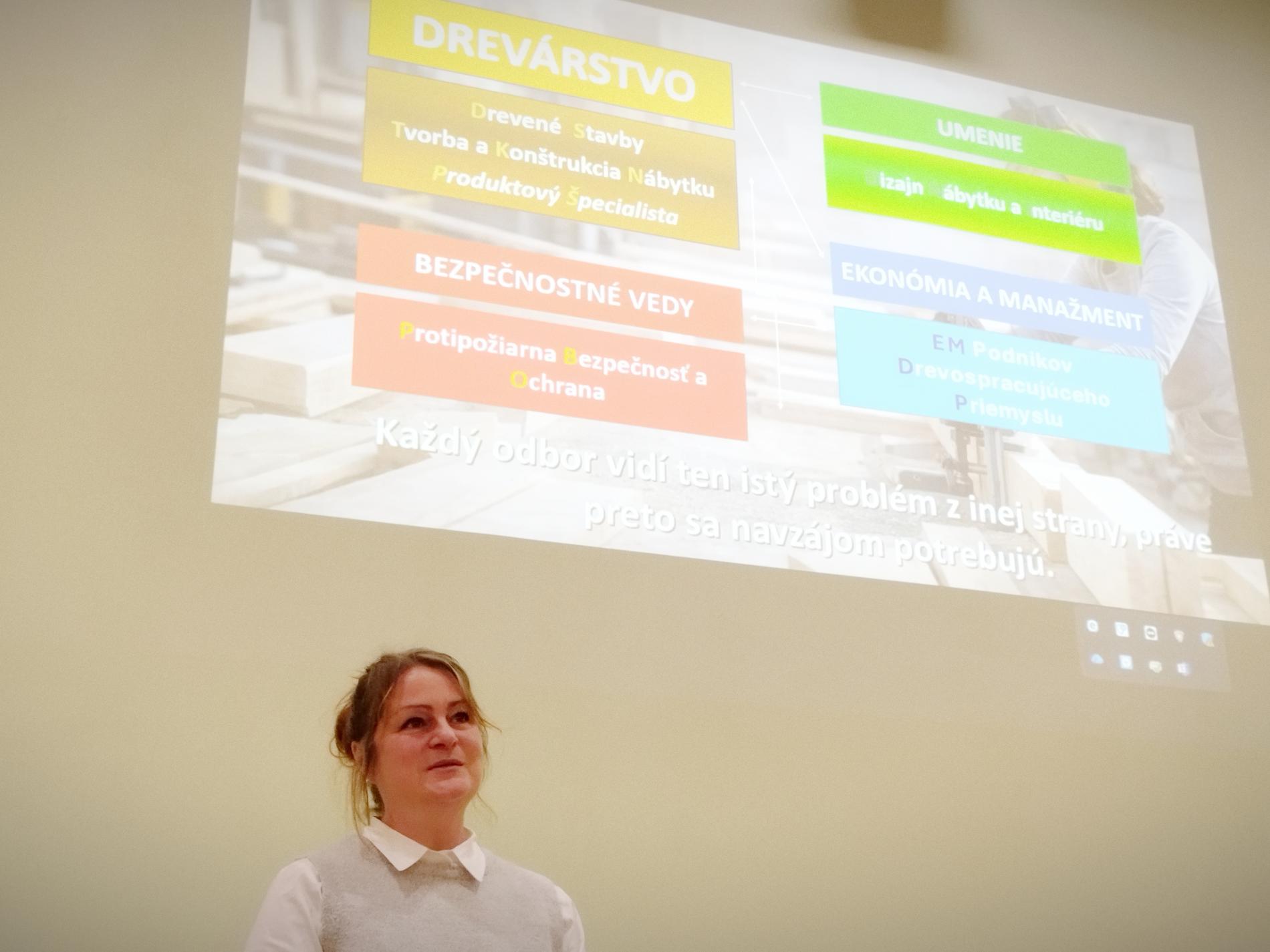 Súčasťou ich návštevy boli odborné prednášky pripravené pedagógmi fakulty podľa tém, ktoré nadväzujú na ich odborné stredoškolské vzdelávanie. Okrem toho sme pre študentov pripravili aj krátku prezentáciu zameranú na význam medziodborovej spolupráce a tímovej práce v drevárskej praxi.