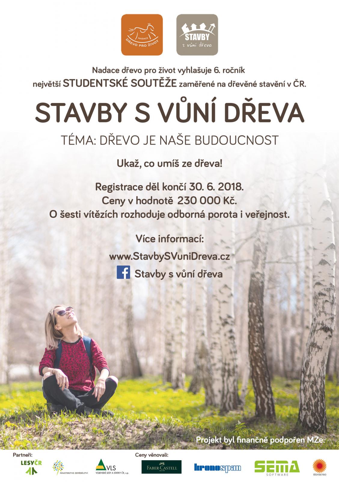 Študenti vyšších a vysokých odborných škôl získajú priestor ukázať verejnosti a svojim potenciálnym zamestnávateľom svoj talent a predsviesť, čo dokážu navrhnúť z dreva. Hlásit sa môžu študenti z Českej a Slovenskej republiky do 30. 6. 2018. Víťazi, ktorých vyberie odborná porota a široká verejnosť v lete 2018, sa majú na čo tešiť. Získajú ceny v celkovej hodnote 230 000 Kč!