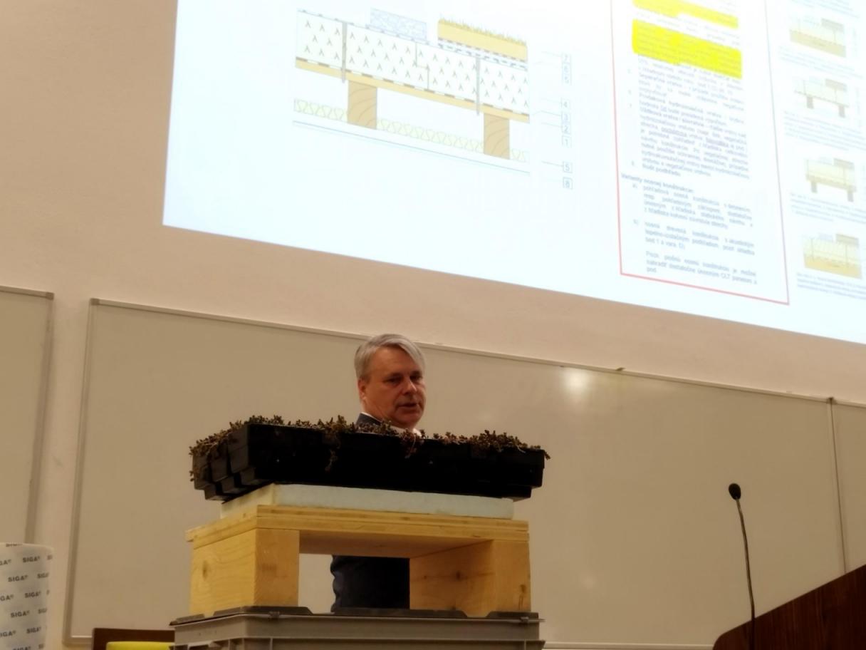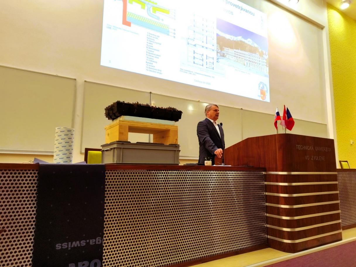 Bc. Karol Plaštiak predstavil najčastejšie poruchy jednoplášťových plochých drevených striech, s ktorými sa stretávame v praxi. V rámci prezentácie sa venoval, kritickým detailom, ktoré sú často zdrojom porúch, prípadovým štúdiám z reálnych stavieb, odporúčaniam, ako už vo fáze návrhu eliminovať riziká zatekania, potenciálnej kondenzácie vo vnútri konštrukcií či degradácie materiálov. Zdôraznil sa význam kvalitného návrhu skladieb, tesniacich materiálov a odvetrania, ktoré rešpektujú fyzikálne procesy.